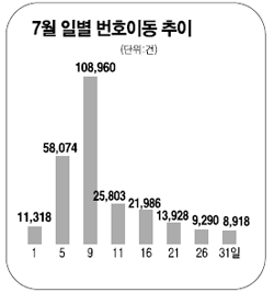 1ÀÏ ¹øÈ£À̵¿¼¾ÅÍ¿¡ µû¸£¸é Áö³ 7¿ù11ÀÏÀ» ±âÁ¡À¸·Î ³»¸²¸·±æÀ» °È´ø ¹øÈ£À̵¿ ¼ö¿ä°¡ ÃÖ±Ù ÀÏÁÖÀÏ »çÀÌ ÀÏ Æò±Õ ¼öõ °Ç¿¡ ºÒ°úÇÑ ¼öÁرîÁö ±Þ¶ôÇß´Ù. ½ÇÁ¦ 7¿ù9Àϰú 10ÀÏ °¢°¢ 10¸¸8,960¸í°ú 8¸¸1,765¸í¿¡ ´ÞÇß´ø ¹øÈ£À̵¿ °Ç¼ö´Â 26ÀÏ 9,290°ÇÀ¸·Î ¶³¾îÁø ÀÌÈÄ ¸¸ 6ÀÏ µ¿¾È 1¸¸ °Ç À§·Î ¿Ã¶ó¼± ÀûÀÌ Çѹøµµ ¾ø´Ù. ¹øÈ£À̵¿ °Ç¼ö°¡ 1¸¸°ÇÀ» 6ÀÏ ÀÌ»ó ¹Øµ· °ÍÀº Áö³ 2004³â 12¿ù ÀÌÈÄ 2³â 7°³¿ù ¸¸¿¡ óÀ½ÀÌ´Ù.