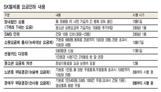 ¿¹¸¦ µé¾î ¸Á³»ÅëȰ¡ ¿ù 100ºÐÀ̶ó¸é Áö±Ý±îÁö´Â 1¸¸2000¿ø(10ÃÊ´ç 20¿ø)À» ³ÂÁö¸¸ ¸Á³»ÇÒÀÎ ¿ä±ÝÁ¦ °¡ÀÔÀÚ´Â 50% ÇÒÀÎµÈ 6000¿ø¿¡ Ãß°¡ ±âº»¡µ SKÅÚ·¹ÄÞÀº ¼Ò·® ÀÌ¿ëÀÚ¸¦ À§ÇØ ´ÙÀ½´Þ ±âº»·á¸¦ 1¸¸3000¿ø¿¡¼ 9900¿øÀ¸·Î ³·Ãá £§´º¼¼À̺꣧ ¿ä±ÝÁ¦¸¦ Ãâ½ÃÇϰí,11¿ùºÎÅÍ´Â 5000¿ø±Ç ¼±ºÒÄ«µåµµ ³»³õ´Â´Ù.