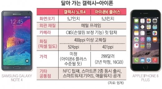 ¡®»ï¼ººü¡¯(»ï¼ºÀüÀÚ ½º¸¶Æ®Æù ¼±È£ °í°´), ¡®¾ÖÇúü¡¯(¾ÖÇà ½º¸¶Æ®Æù ¼±È£ °í°´)°¡ »ý°Ü³¯ Á¤µµ·Î Ư»öÀÌ ´Þ¶ú´ø »ï¼º °¶·°½Ã¿Í ¾ÖÇà ¾ÆÀÌÆùÀÌ ´à¾Æ°¡°í ÀÖ´Ù. »ï¼ºÀüÀÚ°¡ ¾ÖÇÃÀÇ ¡®Àü¸ÅƯÇ㡯 °ÝÀÎ ¸ÞÅÐ ÇÁ·¹ÀÓÀ» ä¿ëÇÑ °¶·°½Ã³ëÆ®4(¿§Áö)¸¦ °ø°³ÇÏÀÚ ±â´Ù·È´Ù´Â µíÀÌ ¾ÖÇÃÀÌ È­¸éÅ©±â¸¦ Ű¿î ù ÆÐºí¸´Æù(ÈÞ´ëÀüÈ­¿Í ÅÂºí¸´PCÀÇ ÇÕ¼º¾î)ÀÎ ¾ÆÀÌÆù6(Ç÷¯½º)¸¦ Ãâ½ÃÇß´Ù. ÆÐÇø´Æù ½ÃÀåÀº »ï¼ºÀüÀÚ°¡ ³ëÆ®½Ã¸®Á Ãâ½ÃÇϸ鼭 ½ÃÀ۵ƴÙ. ½º¸¶Æ®Æù ¾ç°­ÀÇ ÀÏÁ¾ÀÇ ¡®½Å»çÇùÁ¤¡¯ÀÌ ±úÁø ¼ÀÀ̶ó ÀÌÀüº¸´Ù ÇÑÃþ °ÝÇØÁø ½º¸¶Æ®Æù ½ÃÀå ÀïÅ»ÀüÀÌ ¹ú¾îÁú °ÍÀ¸·Î º¸ÀδÙ.