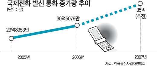 ÇØ¿Ü¿©Çà°ú ¾îÇп¬¼ö µîÀÌ ±ÞÁõÇÏ¸é¼ ¿ÃÇØ Çѱ¹¿¡¼ ÇØ¿Ü·Î °Å´Â ±¹Á¦ÀüÈ ¹ß½Å ÅëÈ·®ÀÌ 35¾ï ºÐ(¾à 5833¸¸ ½Ã°£)¿¡ À̸¦ °ÍÀ¸·Î Àü¸ÁµÆ´Ù. ÀÌ´Â ±¹¹Î ÇÑ »ç¶÷´ç Æò±Õ ¾à 1½Ã°£ 12ºÐÀÇ ±¹Á¦Àüȸ¦ °Ç ¼ÀÀÌ´Ù.