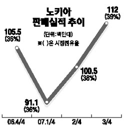 ³ëŰ¾Æ´Â 18ÀÏ ¿Ã 3¤ý4ºÐ±â¿¡ 1¾ï1,170¸¸´ëÀÇ ÈÞ´ëÆùÀ» ÆÇ¸ÅÇÏ¸ç »ç»ó ÃÖ´ë ½ÇÀûÀ» ´Þ¼ºÇß´Ù°í ¹àÇû´Ù. ÀÌ´Â Áö±Ý±îÁö ÃÖ´ë ½ÇÀûÀ̾ú´ø 1¾ï550¸¸´ë(2006³â 4¤ý4ºÐ±â)º¸´Ù 550¸¸´ë¸¦ ´õ ÆÇ¸ÅÇÑ ¼öÄ¡ÀÌ´Ù. ³ëŰ¾Æ´Â Áö³ 2¤ý4ºÐ±â¿¡µµ 1¾ï50¸¸´ëÀÇ ÈÞ´ëÆùÀ» ÆÇ¸ÅÇßÀ¸¸ç 4¤ý4ºÐ±â°¡ ÈÞ´ëÆù ÃÖ´ë ¼º¼ö±â¶ó´Â °ÍÀ» °í·ÁÇϸé 3ºÐ±â ¿¬¼ÓÀ¸·Î 1¾ï´ë°¡ ³Ñ´Â ÈÞ´ëÆùÀ» ÆÇ¸ÅÇÏ°Ô µÈ´Ù. ³ëŰ¾Æ´Â ¿Ã 1¤ý4ºÐ±â¿¡µµ 9,110¸¸´ëÀÇ ÈÞ´ëÆùÀ» ÆÇ¸ÅÇØ ¿¬°£ ÆÇ¸Å·®Àº 4¾ï2,000¸¸~4¾ï3,000¸¸´ë¿¡ À̸¦ °ÍÀ¸·Î ¿¹»óµÈ´Ù.