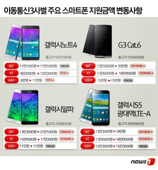 SKÅÚ·¹ÄÞ, KT, LGÀ¯Ç÷¯½º µî ÀÌÅë3»ç´Â 8ÀÏ °¢»ç ȨÆäÀÌÁö¸¦ ÅëÇØ º¯°æµÈ ÈÞ´ëÆùº° °ø½Ã Áö¿ø±ÝÀ» °ø°³Çß´Ù. ´Ü¸»±âÀ¯Å뱸Á¶ °³¼±¹ý(´ÜÅë¹ý)Àº Áö¿ø±ÝÀ» ÃÖ¼Ò ÀÏÁÖÀϰ£ À¯ÁöÇÑ µÚ º¯°æÇÒ ¼ö ÀÖµµ·Ï Çߴµ¥ À̳¯ ÀÌÅë3»ç´Â £§°¶·°½Ã³ëÆ®4£§, £§G3 Cat.6£§ µî ÁÖ¿ä ½º¸¶Æ®ÆùµéÀÇ °ø½Ã Áö¿ø±ÝÀ» 3¸¸~6¸¸¿ø °¡·® ¿Ã·È´Ù.