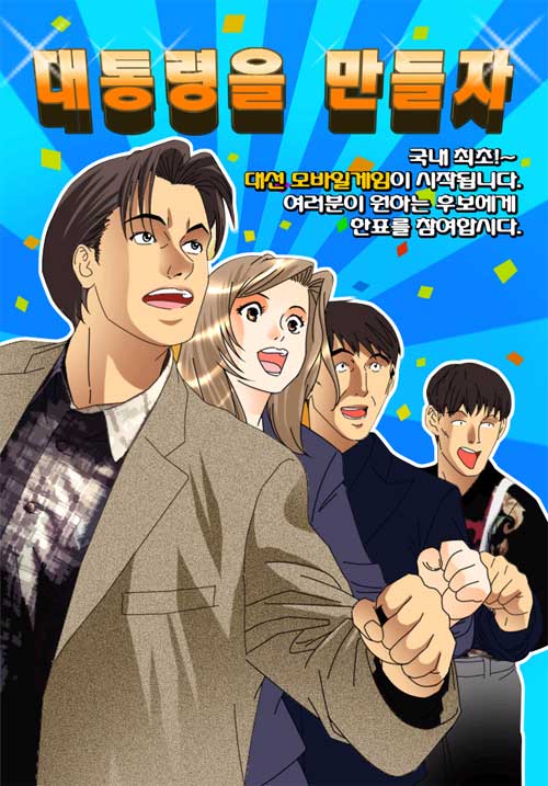ÄÚ¸®¾ÆÄÁÅÙÃ÷³×Å©¿öÅ©(´ëÇ¥ ½Å±¤½Â)¿¡¼ ÆÛºí¸®½ÌÇÑ £¢´ëÅë·ÉÀ» ¸¸µéÀÚ£¢´Â ÇöÀç SKT/KTF¸¦ ÅëÇØ ¼ºñ½º µÇ°í ÀÖÀ¸¸ç, Á÷Á¢ ´ë¼±È常¦ ¼±ÅÃÇÏ°í ¼±°Å¿îµ¿À» ÅëÇØ ÁöÁöÀ²À» ¿Ã·Á ´ëÅë·É¿¡ ´ç¼± ½ÃŰ´Â °ÔÀÓÀÌ´Ù.