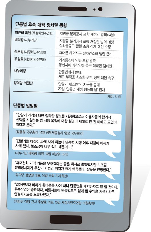£§À̵¿Åë½Å ´Ü¸»±â À¯Å뱸Á¶ °³¼±¿¡ °üÇÑ ¹ý·ü(´ÜÅë¹ý)£§¿¡ ´ëÇÑ ºÒ¸¸ÀÌ È®´ëÀç»ý»ê µÇ¸é¼­ ´ÜÅë¹ý °³Á¤ ¿òÁ÷ÀÓÀÌ º»°ÝÈ­µÇ°í ÀÖ´Â °¡¿îµ¥ ±¹È¸¿Í Åë½Å»ç¾÷ÀÚ, Á¦Á¶¾÷üµéÀÌ °¢°¢ ÀÌÇØ°¡ ´Ù¸¥ ´ë¾ÈÀ» ¿ìÈÄÁ×¼ø ³»³õ°í ÀÖ¾î »ç°ø ¸¹Àº ´ÜÅë¹ýÀÌ »êÀ¸·Î °¡´Â °Í ¾Æ´Ï³Ä´Â °ÆÁ¤ÀÌ º»°ÝÈ­µÇ°í ÀÖ´Ù.
