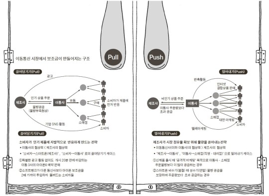 ¡¡Æ¯È÷ ¡®¹Ð¾î³»±â(Push)¡¯¿Í ¡®²ø¾î´ç±â±â(Pull)¡¯´Â ÀÌÅë »ç¾÷¿¡¼­µµ ±âº»ÀûÀ̸鼭µµ ÇÙ½ÉÀûÀÎ À¯Åë Àü·«À¸·Î ²ÅÈù´Ù. Çõ½ÅÀûÀÎ ½ÅÁ¦Ç°À» ³»³ùÀ» ¶§´Â ±¤°í³ª ÀÔ¼Ò¹®À» ÅëÇØ Ãâ½Ã Ãʱ⿡ ¼ÒºñÀÚµéÀÇ ½Ã¼±À» ²ø¾î´ç°Ü¾ß (pull)Çϸç , ºñ¼ö±â¿¡´Â Á¦Ç°À» À¯Åë üÀÎ(chain)¿¡ ÁÖ¹® ¼ö·®º¸´Ù ¾ó¸¶¸¸Å­ ´õ ¸¹ÀÌ ¹Ð¾î³»´À³Ä(push)¿¡ µû¶ó ½ÇÀû ºÎÁøÀ» »ó¼âÇÒ ¼ö ÀÖ´Ù.