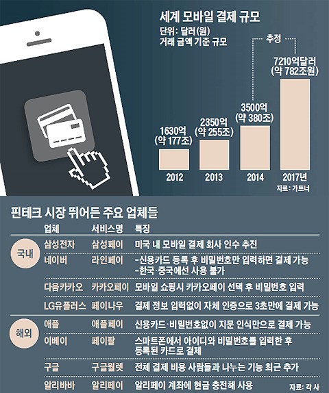 IT ¾÷°è °­ÀÚ(Ë­íº)µéÀÌ ¸ð¹ÙÀÏ °áÁ¦ ¼­ºñ½º¸¦ Á¦°øÇÏ·Á´Â ÀÌÀ¯´Â ´Ü¼øÈ÷ ¼ö¼ö·á ¼öÀÔÀ» ³ë¸° °ÍÀÌ ¾Æ´Ï´Ù. LG°æÁ¦¿¬±¸¿ø¿¡ µû¸£¸é 2017³â ¼¼°è ¸ð¹ÙÀÏ °áÁ¦ ±Ô¸ð´Â 800Á¶¿ø¿¡ À°¹ÚÇÏÁö¸¸, IT ±â¾÷µéÀÌ °¡Á®°¡´Â °áÁ¦ ¼ö¼ö·á ±Ô¸ð´Â 2Á¶5000¾ï~5Á¶¿ø¿¡ ±×Ä¥ Àü¸ÁÀÌ´Ù. ÇÑ ÇØ¿¡¸¸ ¼ö½ÊÁ¶¿ø¿¡¼­ ¼ö¹éÁ¶¿ø´ë ¸ÅÃâÀ» ¿Ã¸®´Â ±â¾÷µé·Î¼­´Â º°·Î Å« ½ÃÀåÀÌ ¾Æ´Ï´Ù. À̵éÀÌ ³ë¸®´Â °ÍÀº °áÁ¦ ¼ö¼ö·áº¸´Ù´Â ±âÁ¸ °í°´À» ÀÚ»ç ¼­ºñ½º ¾È¿¡ ¹­¾îµÎ°í(lock in) ½ÃÀå Áö¹è·ÂÀ» È®°íÈ÷ Çϱâ À§ÇÑ °ÍÀÌ´Ù.