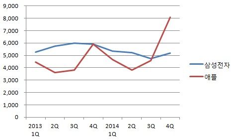 Áö³ÇØ 2ºÐ±â±îÁö¸¸Çصµ Á¡Â÷ °ÝÂ÷¸¦ ÁÙ¿©°¡´ø ¿µ¾÷ÀÌÀÍÀº Áö³ÇØ 3ºÐ±â Å©°Ô ¹ú¾îÁøµ¥ À̾î, 4ºÐ±â¿¡´Â ´õ ¸¹Àº Â÷À̰¡ ¹ß»ýÇß´Ù. ¾ÖÇÃÀº Áö³ ºÐ±â 242¾ï4õ600¸¸´Þ·¯(¾à 26Á¶5õ¾ï¿ø)ÀÇ ¿µ¾÷ÀÌÀÍÀ» ¿Ã·È´Ù. »ï¼ºÀüÀÚÀÇ ¿µ¾÷ÀÌÀÍ 5Á¶2õ900¾ï¿ø°ú 20Á¶ ÀÌ»óÀÇ Â÷À̰¡ ³´Ù.