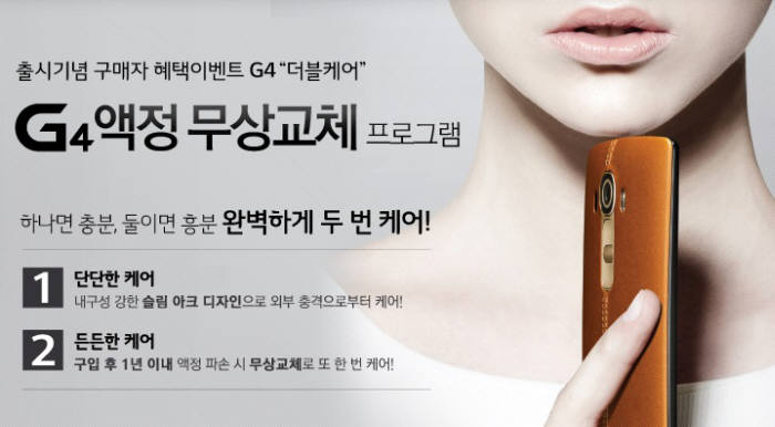 ¡´LGÀüÀÚ´Â Àü·« ½º¸¶Æ®Æù ¡®LG G4¡¯ Ãâ½Ã¸¦ ¸ÂÀÌÇØ 1³â À̳» ¾×Á¤ ÆÄ¼Õ ½Ã ¹«»óÀ¸·Î ¾×Á¤À» ±³È¯ÇØ ÁÖ´Â ¡®´õºí Äɾ ÇÁ·Î±×·¥À» ÁøÇàÇÑ´Ù¡µ