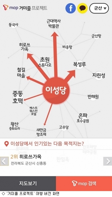 ¿ù 1¾ï7õ¸¸¿©°ÇÀÇ °æ·Î¾È³» ºòµ¥ÀÌÅ͸¦ Åä´ë·Î Àü±¹ µµ½ÃÀÇ ÁÖ¿ä Àα⠸ÀÁý, ¿©ÇàÁö¸¦ ¹æ¹®ÇÑ »ç¿ëÀÚµéÀÌ ÀÌÈÄ ÇÔ²² ãÀº ¿¬°ü ¸ñÀûÁö Á¤º¸¸¦ ºÐ¼®ÇØ °ü°è Áöµµ·Î Á¦°øÇÑ´Ù.