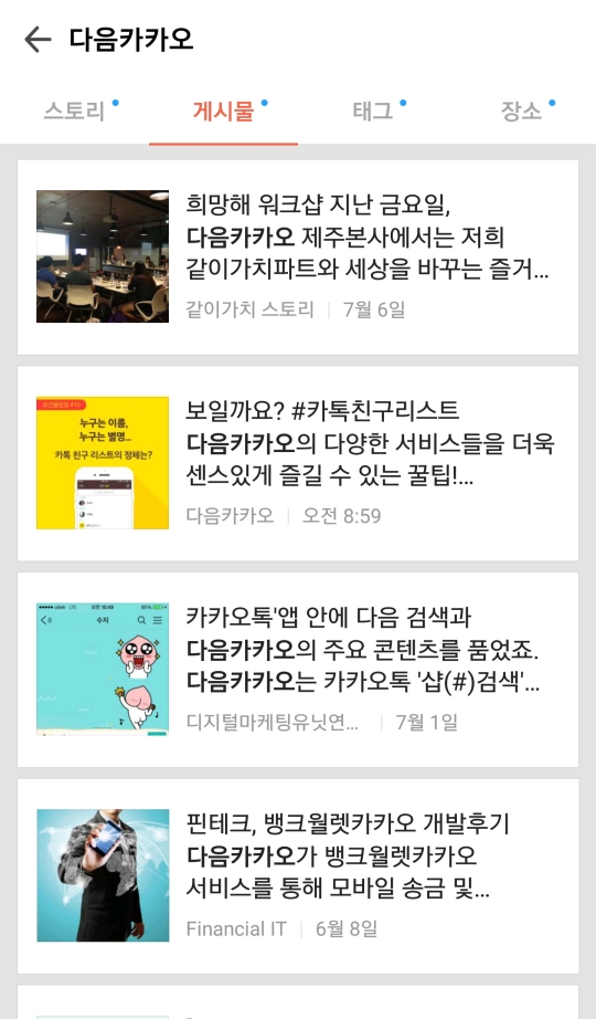 īī¿À½ºÅ丮 °Ô½Ã¹° ³ëÃâÀº ¿À´Â 28ÀϺÎÅÍ Ä«Ä«¿À°Ë»ö¿¡¼­µµ ÀÌ·ïÁø´Ù.