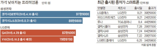 ¡¡½ÇÁ¦ ÃÖ±Ù µé¾î ÇÁ¸®¹Ì¾öÆùÀÇ Ãâ°í°¡°¡ ³·¾ÆÁö°í ÀÖ´Ù. LGÀüÀÚ°¡ 8ÀÏ Ãâ½ÃÇÏ´Â V10Àº ¡®¼öÆÛ ÇÁ¸®¹Ì¾öÆù¡¯À̶ó´Â ¸»ÀÌ ³ª¿Ã Á¤µµ·Î ÃֽŠ»ç¾çÀ» °®ÃèÁö¸¸ Ãâ°í°¡´Â 70¸¸¿ø´ë·Î Áö³­ 4¿ù ³ª¿Â 80¸¸¿ø´ë G4º¸´Ù ³·´Ù. »ï¼ºÀüÀÚµµ 8¿ù ¼±º¸ÀÎ °¶·°½Ã³ëÆ®5ÀÇ °¡°ÝÀ» 80¸¸¿ø´ë·Î Ã¥Á¤Çߴµ¥ ÀÌ´Â ÀÌÀü ¸ðµ¨ÀÎ °¶·°½Ã³ëÆ®4 ¹× °¶·°½ÃS6¿§Áöº¸´Ù ³·Àº °ÍÀÌ´Ù. ÀÌ·¸°Ô ±¹³» Á¦Á¶»çµéÀÌ ÀÚ¼¼¸¦ ³·Ãá °Ç ÃÖ±ÙÀÇ ÀÏÀÌ´Ù. »ï¼ºÀüÀÚÀÇ °æ¿ì ¿Ã 4¿ù °¶·°½ÃS6¸¦ Ãâ½ÃÇÒ ¶§¸¸ ÇØµµ ¾ÖÇÃÀÇ ¾ÆÀÌÆù6¿Í ¶È°°°Ô °¡°ÝÀ» Ã¥Á¤Çϸç ÀÚÁ¸½É ´ë°áÀ» Çß´Ù. ÇÏÁö¸¸ ½ÃÀå »óȲÀÌ º¯Çϸ鼭 ÀÌÁ¦´Â ½Ç¸®¸¦ ì±â´Â ÂÊÀ¸·Î ¼±È¸ÇÑ °ÍÀÌ´Ù.