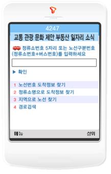 2008³â »ó¡¤ÇϹݱâ Winc ¼ºñ½º ÀÌ¿ë ¼øÀ§ 1À§¸¦ Â÷ÁöÇÑ °æ±âµµ ¹ö½ºÁ¤º¸ ¼ºñ½ºÀÎ ¡®4247¡¯°ú °æ±âµµÀÇ ´Ù¾çÇÑ µµÁ¤¼Ò½ÄÀ» ½Å¼Ó¡¤Á¤È®ÇÏ°Ô Á¦°øÇÏ´Â ¸ð¹ÙÀϰæ±â ¡®3599¡¯°¡ µµ¹Î ÆíÀǸ¦ À§ÇØ ¡®4247¡® ÇϳªÀÇ ¹øÈ£·Î ÅëÇյƴÙ.