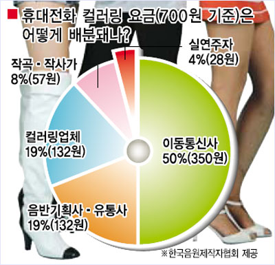 ÈÞ´ëÀüÈ ÅëÈ ¿¬°áÀ½(Ä÷¯¸µ)ÀÇ °æ¿ì °Ç´ç 700¿øÀÇ ±Ý¾× °¡¿îµ¥ 50%°¡ À̵¿Åë½Å»çÀÇ ¸òÀÌ´Ù. À̿ܿ¡µµ À½¿øÀ» °ü¸®ÇÏ´Â À̸¥¹Ù Ä÷¯¸µ¾÷ü°¡ 19%¸¦ °¡Á®°£´Ù. ³ª¸ÓÁö°¡ ½ÇÁ¦ ³ë·¡¸¦ ¸¸µç °ü·ÃÀÚ Áï ÀúÀÛÀÎÁ¢±ÇÀÚµéÀÇ ¸òÀÌ´Ù. ¿©±â¿¡´Â ¾Ù¹üÀ» ±âȹÇÑ Á¦ÀÛ»ç¿Í À¯Åë»ç°¡ Åë»óÀûÀ¸·Î 19%¸¦ °¡Á®°£´Ù.(Ç¥ ÂüÁ¶)
