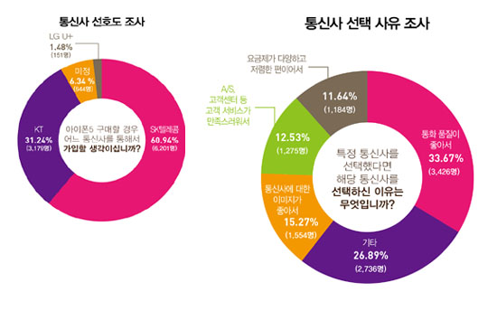 ¼³¹®Á¶»ç °á°ú ¼ÒºñÀÚµéÀÇ ½º¸¶Æ®Æù ÀÌÅë»ç ¼±Åà ½Ã ÅëÈ Ç°ÁúÀÌ °¡Àå Áß¿äÇÑ ¿ä¼Ò·Î Æò°¡µÇ°í ÀÖ°í, ¾ÖÇà ¾ÆÀÌÆùÀÇ °æ¿ì ±â±â »ó´ãÀ̳ª A/S µî °í°´ ¼ºñ½º °È°¡ ÇÊ¿äÇÑ °ÍÀ¸·Î ³ªÅ¸³µ´Ù. ¶Ç, ¾ÆÀÌÆù5°¡ Ãâ½ÃµÉ ½Ã ¾î¶² ä³ÎÀ» ÅëÇØ ±¸¸ÅÇÒ °ÍÀÎÁö¸¦ ¹¯´Â Áú¹®¿¡¼´Â ÀÎÅÍ³Ý ±¸¸Å°¡ 32%(3281¸í)·Î °¡Àå ³ô°Ô ³ªÅ¸³µ°í, ¿¹¾à ÆÇ¸Å 30%(2998¸í)¿Í ÀÌÅë»ç ´ë¸®Á¡ 24%(2469¸í)ÀÌ ±× µÚ¸¦ À̾ú´Ù.