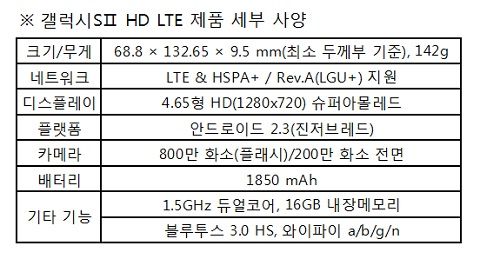 ÀÌ¿¡ µû¶ó ¹èÅ͸® ¼Ò¸ð·®ÀÌ »ó´çÇÒ °ÍÀ¸·Î Àü¸ÁµÇÁö¸¸, »ï¼ºÀüÀÚ´Â ºÒÆíÇÏÁö ¾ÊÀ» ¼öÁØÀ̶ó°í ¼³¸íÇß´Ù. ±âº» ¹èÅ͸® ¿ë·®Àº 1850mAh. Ãâ°í°¡´Â ¡®°¶·°½ÃS2 LTE¡¯°¡ 85¸¸8õ¿ø, ¡®°¶·°½ÃS2 HD LTE¡¯´Â 90¸¸¿ø ¼±ÀÌ´Ù. SKÅÚ·¹ÄÞÀÌ ¹æ¼ÛÅë½ÅÀ§¿øÈ¸·ÎºÎÅÍ LTE ¿ä±ÝÁ¦ Àΰ¡¸¦ ¾ÆÁ÷ ¸ø ¹Þ¾Æ Ãâ½ÃÀÏÀÌ ¹ÌÁ¤ÀÌÁö¸¸, ³»´Þ ÃÊ¸é ¸ÅÀå¿¡ µîÀåÇÒ Àü¸ÁÀÌ´Ù. HD Á¦Ç°Àº LGÀ¯Ç÷¯½º¿Í KTµµ Ãâ½Ã ¿¹Á¤ÀÌ´Ù.