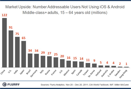 ÇÏÁö¸¸ ÀáÀç½ÃÀåÀ» ³ªÅ¸³»´Â ±×·¡ÇÁ¿¡¼´Â ÀÌ °°Àº °á°ú°¡ ¿ÏÀüÈ÷ µÚ¹Ù²ï´Ù. Ç÷¯¸®°¡ 15»ì¿¡¼ 64¼¼ Àα¸ Áß ½º¸¶Æ®ÆùÀ» ÀÌ¿ëÇϰí ÀÖÁö ¾ÊÀº Àα¸¸¦ Á¶»çÇØ ±¹°¡º°·Î ¹ßÇ¥ÇÑ ÀڷḦ º¸ÀÚ. ÀÌ ÀÚ·á¿¡¼´Â Áß±¹ÀÌ ´Ü¿¬ °¡Àå Å« ±Ô¸ð¸¦ ±â·ÏÇß´Ù. Áß±¹Àº IMF°¡ °íÁöÇÑ Áß»êÃþ °æÁ¦È°µ¿ÀÎ Áß 1¾ï2200¸¸¸íÀÇ Àα¸°¡ ½º¸¶Æ®ÆùÀ» ÀÌ¿ëÇϰí ÀÖÁö ¾ÊÀº °ÍÀ¸·Î ³ªÅ¸³µ´Ù.