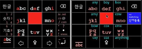 ¿¹¸¦ µé¾î `boy£§¸¦ ÀÔ·ÂÇÏ·Á¸é `abc£§°¡ ¸ðÀÎ 1¹øÅ°¿Í `mno£§°¡ ¸ðÀÎ 6¹øÅ°, `wxyz£§°¡ ¸ðÀÎ 9¹øÅ°¸¦ ´©¸£°í ³ª¼­ ¿¹Ãø ´Ü¾î Áß Çϳª·Î `boy£§°¡ ³ªÅ¸³ª¸é Çϳ¯Å°¸¦ ´©¸¥ »óÅ¿¡¼­ boy°¡ ÀÖ´Â 2¹øÅ° À§Ä¡·Î ¼Õ°¡¶ôÀ» ²ø¸é(drag) µÈ´Ù.