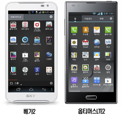 µÎ Á¦Ç°ÀÇ °¡Àå Å« Â÷ÀÌ´Â »ç¿ëÀÚ È¯°æ(UI)ÀÌ´Ù. ¿ÉƼ¸Ó½ºLTE´Â 5ÀÎÄ¡ ´ëȸéÀÇ£§¿ÉƼ¸Ó½ººä£§ÀÇ ÀåÁ¡ÀΣ§Easy UI£§¸¦ °ÅÀÇ ±×´ë·Î ¿Å°Ü¿Ô´Ù. Äü ¸Þ¸ð ±â´ÉÀÌ ´ëÇ¥ÀûÀÌ´Ù. º£°¡·¹À̼2´Â ±âÁ¸ UI¿Ü¿¡µµ »õ·Ó°Ô À©µµÆù°ú ºñ½ÁÇÑ Å¸ÀÏ Çü½ÄÀÇ °£Æí ¸ðµå¸¦ µµÀÔÇß´Ù.