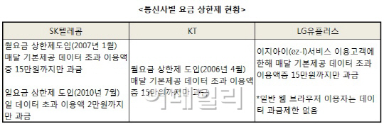 ÇÑÆí µ¥ÀÌÅÍ ¿ä±Ý »óÇÑÁ¦¸¦ ¾Ç¿ëÇÒ »ý°¢À̶ó¸é ÁÖÀÇÇÒ Á¡ÀÌ ÀÖ´Ù. Åë½Å 3»ç ¸ðµÎ Á¤º¸ÀÌ¿ë·á´Â Àü¾× ºÎ°úÇÑ´Ù. ¿ä±Ý »óÇÑÁ¦¸¦ ¿°µÎ¿¡ µÎ°í LTE¸¦ ¸¶À½²¯ ½è´Ù°¡ Á¤º¸ÀÌ¿ë·á·Î ¼ö¹é¸¸¿øÂ¥¸® ¿ä±ÝÆøÅºÀ» ¸ÂÀ» ¼öµµ ÀÖ´Ù´Â ¾ê±â´Ù.