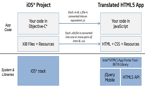 ÀÏ´Ü ÀÎÅÚÀº ¾ÛÆ÷ÅÍÅø¿¡¼­ £§´ë´Ù¼ö ¾Û¿¡ ³ôÀº ºñÁßÀ¸·Î »ç¿ëµÇ´Â ¼Ò¼öÀÇ API£§¸¦ Áö¿øÇϱâ·Î Çß´Ù. ÇöÀç º£Å¸ ¹öÀü¿¡¼± £§UIŰƮ ÇÁ·¹ÀÓ¿öÅ©£§¿Í £§ÆÄ¿îµ¥À̼ÇÇÁ·¹ÀÓ¿öÅ©£§ÀÇ Å¸ÀÔ°ú ¸Þ¼Òµå ´ëºÎºÐÀ» Áö¿øÇÑ´Ù´Â ¼³¸íÀÌ´Ù. ÅøÀ» ¼Ò°³ÇÑ °ø½Ä À¥ÆäÀÌÁö(http://software.intel.com/en-us/articles/technical-reference-intel-html5-app-porter-tool-beta)¿¡ ÇöÀç ÀÚµ¿º¯È¯À» Áö¿øÇÏ´Â iOS SDK API ¸ñ·ÏÀÌ Á¦½ÃµÅ ÀÖ´Ù.