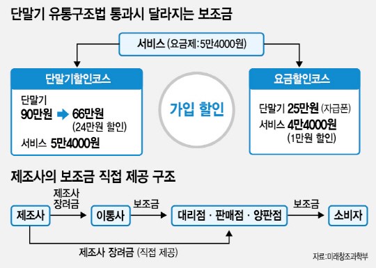 ÇöÀç´Â SKÅÚ·¹ÄÞ(017670), KT(030200), LGÀ¯Ç÷¯½º(032640) µî À̵¿Åë½Å»ç¸¸ ±ÔÁ¦ ´ë»óÀ̾úÁö¸¸, ¾ÕÀ¸·Î´Â »ï¼ºÀüÀÚ(005930)³ª LGÀüÀÚ(066570), ÆÒÅà °°Àº Á¦Á¶»çµéµµ ´Ü¸»±â ÆÇ¸Å·®°ú Ãâ°í°¡, ÆÇ¸ÅÀå·Á±Ý µî¿¡ ´ëÇÑ ÀڷḦ Á¤ºÎ¿¡ ³»¾ß ÇÑ´Ù. Á¦Á¶»ç¿Í ´ë¸®Á¡¡¤ÆÇ¸ÅÁ¡µµ ¹æ¼ÛÅë½ÅÀ§¿øÈ¸ÀÇ Á¶»ç ´ë»óÀÌ µÇ¸ç, ¹ý À§¹Ý ½Ã °ú¡±Ý(Á¦Á¶»ç)À̳ª °úÅ·á(ÆÇ¸ÅÁ¡ µî)¸¦ ¹ÞÀ» ¼ö ÀÖ´Ù.