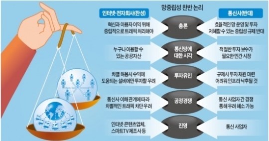 Åë½Å¸ÁÀ» Â÷º° ¿î¿µÇÏ´Â °ÍÀ» ¸·´Â ¡®¸ÁÁ߸³¼º(network neutrality)¡¯ ¿øÄ¢ÀÌ À§±â¸¦ ¸Â¾Ò´Ù. ¹Ì±¹ ¿¬¹æ¹ý¿øÀº 14ÀÏ(ÇöÁö½Ã°£) ¿¬¹æÅë½ÅÀ§¿øÈ¸(FCC)ÀÇ ¸ÁÁ߸³¼º ±ÔÁ¦°¡ ºÎ´çÇÏ´Ù´Â ÆÇ°áÀ» ³»·È´Ù. ¹Ì±¹Àº ¸ÁÁ߸³¼º Á¾ÁÖ±¹À̶ó ºÒ¸± ¸¸Å­ °ü·Ã ±ÔÁ¦¸¦ ¹ýÀ¸·Î ¸¸µé¾î °­·ÂÇÏ°Ô ÃßÁøÇÑ ³ª¶ó¿©¼­ Çѱ¹À» ºñ·ÔÇÑ ¼¼°è °¢±¹¿¡ ÀûÁö ¾ÊÀº ¿µÇâÀ» ¹ÌÄ¥ Àü¸ÁÀÌ´Ù. ¸ÁÁ߸³¼ºÀº ³×Æ®¿öÅ©¸¦ °¡Áø Åë½Å»çµéÀÌ Æ®·¡ÇÈ À¯¹ß µîÀ» ÀÌÀ¯·Î ƯÁ¤ »ç¾÷ÀÚ¿¡ Ãß°¡ °ú±ÝÇϰųª ¼­ºñ½º¸¦ Â÷´ÜÇÏÁö ¸øÇϵµ·Ï ÇÏ´Â ±ÔÁ¦´Ù. À̹ø ÆÇ°á·Î ±¹³»¿¡¼­µµ Åë½Å»ç¾÷ÀÚµéÀÌ ½º¸¶Æ®TV, µ¿¿µ»ó ¼­ºñ½º, ¸ð¹ÙÀÏ ¸Þ½ÅÀú ¾÷ü¿¡ Ãß°¡·Î ³×Æ®¿öÅ© ÀÌ¿ë ´ë°¡¸¦ ¿ä±¸ÇÏ¸ç ¹ß»ýÇÏ´Â ºÐÀïÀÌ ´Ã¾î³¯ °ÍÀ¸·Î º¸ÀδÙ.