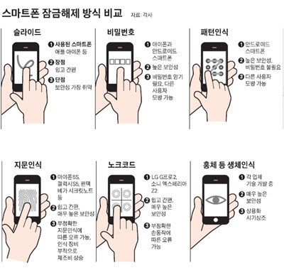 ÃÖ±Ù º¸ÆíÈ­µÈ º¸¾ÈÀåÄ¡´Â Áö¹®ÀνÄ. ±âÁ¸¿¡ »ç¿ëÇÏ´ø ½½¶óÀÌµå ¹æ½Ä(¹Ð¾î¼­ Àá±Ý ÇØÁ¦)Àº °£ÆíÇÏÁö¸¸ º¸¾È¼öÁØÀÌ Ãë¾àÇϰí, ÆÐÅϤýºñ¹Ð¹øÈ£ ¹æ½ÄÀº ºÒÆíÇϸ鼭µµ º¸¾È¼öÁØÀÌ ±×¸® ³ôÁö ¾Ê¾Ò´Ù. ÇÏÁö¸¸ Áö¹®ÀÎ½Ä ¹æ½ÄÀº »ó´ëÀûÀ¸·Î Æí¸®ÇÏ°í º¸¾È¼öÁصµ ³ô´Ù. ¾ÖÇÃÀÇ ¾ÆÀÌÆù5S´Â Ȩ ¹öư¿¡ Áö¹®ÀÎ½Ä ±â´ÉÀ» ³Ö¾ú°í, ÆÒÅÃÀº º£°¡ LTE-A, ½ÃÅ©¸´ ³ëÆ®, ½ÃÅ©¸´ ¾÷ µî¿¡ ÀÚü °³¹ßÇÑ Áö¹®ÀÎ½Ä ±â¼úÀ» ´ã¾Ò´Ù. 4¿ù Ãâ½Ã ¿¹Á¤ÀÎ »ï¼ºÀÇ °¶·°½ÃS5¿¡µµ Áö¹®ÀÎ½Ä ¹öưÀÌ Å¾ÀçµÅ ¼Õ½¬¿î Àá±Ý ÇØÁ¦¸¦ µµ¿ï ¿¹Á¤ÀÌ´Ù.
