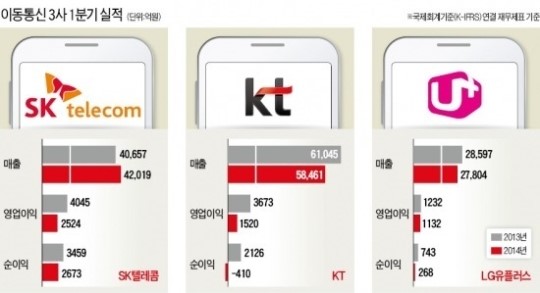 SKÅÚ·¹ÄÞ KT LGÀ¯Ç÷¯½º µî Åë½Å 3»ç°¡ ¿¹»ó´ë·Î ÃʶóÇÑ 1ºÐ±â ¼ºÀûÇ¥¸¦ ¹Þ¾Æµé¾ú´Ù. ¡®1¡¤23 ´ë¶õ¡¯ ¡®2¡¤11 ´ë¶õ¡¯ µî ¿¬ÃʺÎÅÍ Ä¡¿­Çß´ø º¸Á¶±Ý °æÀïÀÌ °í½º¶õÈ÷ ½ÇÀû ¾ÇÈ­ ºÎ¸Þ¶ûÀ¸·Î µ¹¾Æ¿Ô´Ù´Â ºÐ¼®ÀÌ ³ª¿Â´Ù. Åë½Å¼­ºñ½º Àå¾Ö¿Í À¯¼± ¸ÅÃâ °¨¼Ò µî °³º° ¾ÇÀçµµ ½ÇÀû ¾ÇÈ­¿¡ ¿µÇâÀ» ¹ÌÃÆ´Ù.