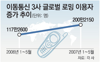 ¡¶¿Ü±¹¿¡ ³ª°¡¼µµ À̵¿Åë½Å ¼ºñ½º¸¦ ÀÌ¿ëÇÏ´Â ±Û·Î¹ú ·Î¹Ö »ç¿ëÀÚ°¡ Å©°Ô ´Ã°í ÀÖ´Ù. 19ÀÏ À̵¿Åë½Å¾÷°è¿¡ µû¸£¸é SKÅÚ·¹ÄÞ, KTF, LGÅÚ·¹ÄÞ À̵¿Åë½Å 3»çÀÇ ¿ÃÇØ 1¡5¿ù ·Î¹Ö ÀÌ¿ëÀÚ°¡ 200¸¸2150¸íÀ¸·Î À۳⠰°Àº ±â°£º¸´Ù 70%°¡·® Áõ°¡Çß´Ù.¡·