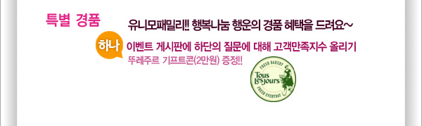 - Ưº°°æÇ° : À̺¥Æ® ±â°£¿¡ À¯´Ï¸ðÆÐ¹Ð¸® µî·Ï¸¸ Çϼŵµ ¶Ñ·¹ÁÖ¸£±âÇÁÆ®ÄÜ(2¸¸¿ø) - 5ºÐÃß÷