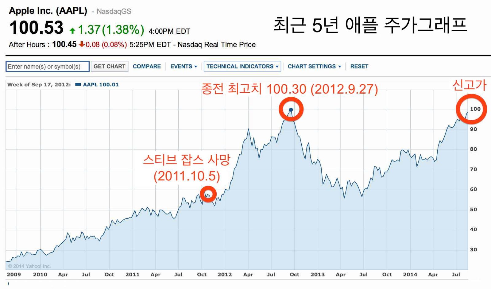 ¾ÖÇà ÁÖ°¡°¡ °£¹ã¿¡ ´º¿å¿¡¼­ »ç»óÃÖ°íÄ¡¿¡ ´ÞÇß½À´Ï´Ù. Á¾°¡ 100.53´Þ·¯. ÀåÁß¿¡´Â 100.68´Þ·¯±îÁö ¿Ã¶ú´Ù°í ÇÕ´Ï´Ù. ¾ÖÇÃÀº Áö³­ 6¿ù ÁÖ½ÄÀ» 7´ë1 ºñÀ²·Î ºÐÇÒÇßÁÒ. ÀÌ°É ¹Ý¿µÇؼ­ ÁÖ°¡¸¦ ´Ù½Ã »êÁ¤Çϸé, Á¾Àü ÃÖ°í°¡´Â 2012³â 9¿ù19ÀÏ ±â·ÏÇÑ 100.30´Þ·¯(ºÐÇÒ Àü 702.10´Þ·¯). ¾ÖÇà ÁÖ°¡ ÃÖ°íÄ¡¿¡ °üÇØ °£´ÜÈ÷ ¸Þ¸ðÇÕ´Ï´Ù.