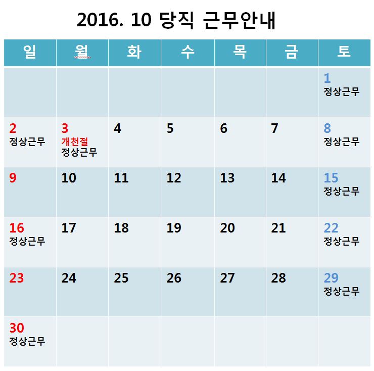 [2016³â 10¿ù ÁÖ¸» ¹× °øÈÞÀÏ ´çÁ÷±Ù¹« ¾È³»]
