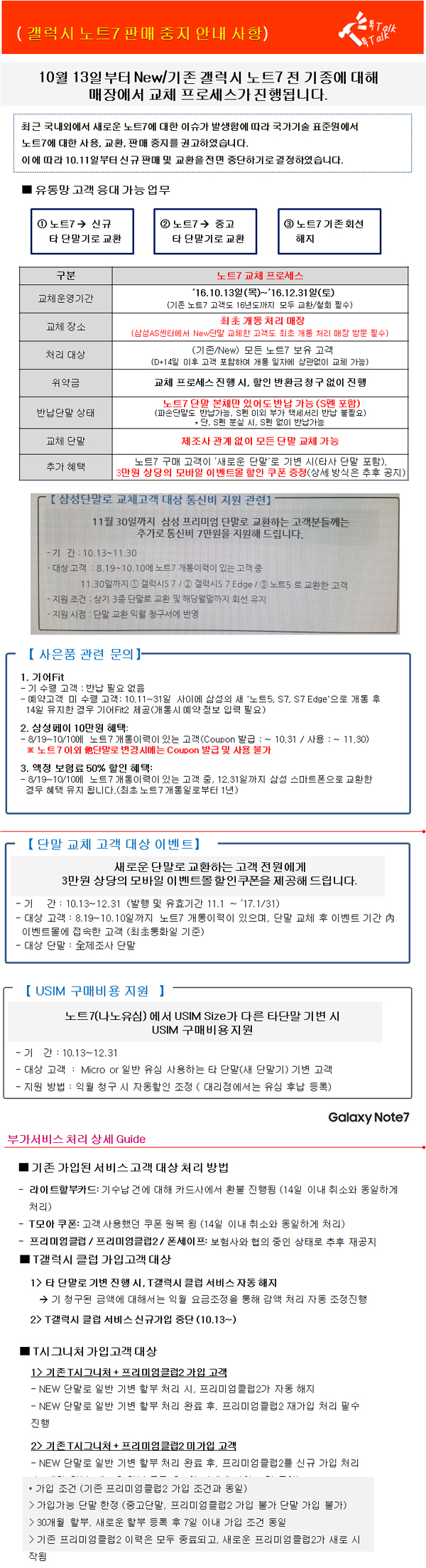 A. ÃÖ±Ù ±¹³»¿Ü¿¡¼­ »õ·Î¿î ³ëÆ®7¿¡ ´ëÇÑ À̽´°¡ ¹ß»ýÇÔ¿¡ µû¶ó ±¹°¡±â¼úÇ¥ÁØ¿ø¿¡¼­ ³ëÆ®7¿¡ ´ëÇÑ »ç¿ë, ±³È¯, ÆÇ¸Å ÁßÁö¸¦ ±Ç°íÇÏ¿´½À´Ï´Ù. ÀÌ¿¡ µû¶ó SKÅÚ·¹ÄÞ¿¡¼­µµ 10.11ÀϺÎÅÍ ½Å±Ô ÆÇ¸Å ¹× ±³È¯À» Àü¸é Áß´ÜÇϱâ·Î °áÁ¤ÇÏ¿´½À´Ï´Ù.