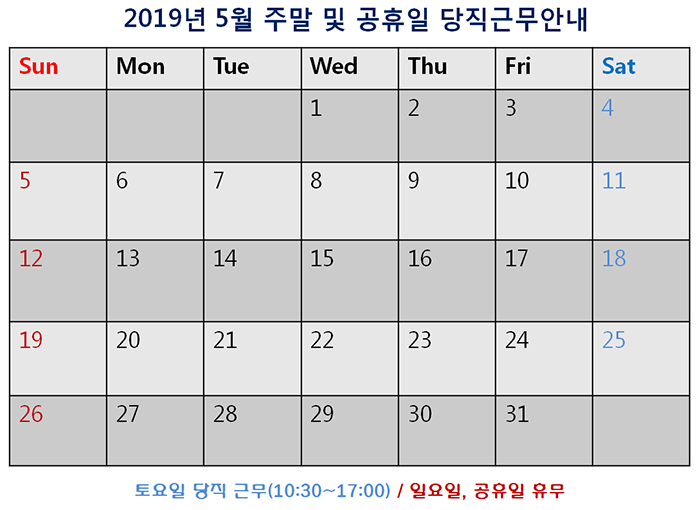 [2019³â 5¿ù ÁÖ¸» ¹× °øÈÞÀÏ ´çÁ÷±Ù¹« ¾È³»]