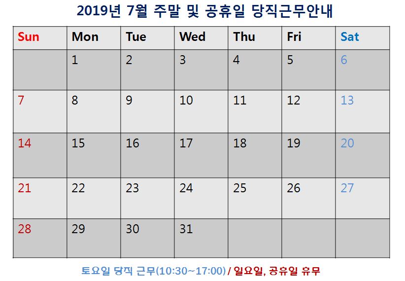 [2019³â 7¿ù ÁÖ¸» ¹× °øÈÞÀÏ ´çÁ÷±Ù¹« ¾È³»]