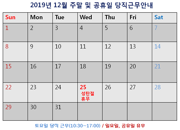 [2019³â 12¿ù ÁÖ¸» ¹× °øÈÞÀÏ ´çÁ÷±Ù¹« ¾È³»]