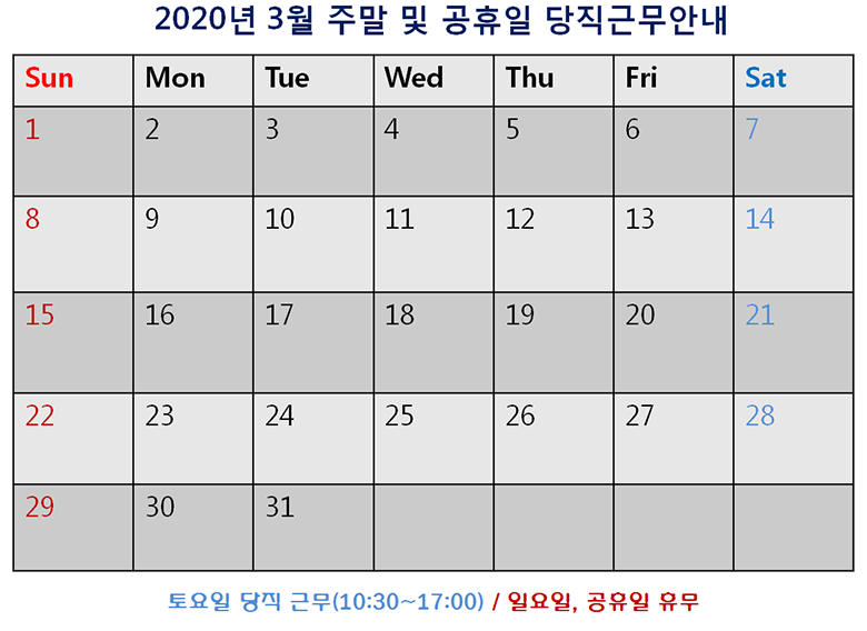 [2020³â 3¿ù ÁÖ¸» ¹× °øÈÞÀÏ ´çÁ÷±Ù¹« ¾È³»]