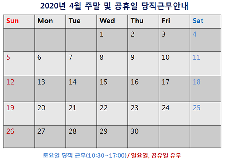 [2020³â 4¿ù ÁÖ¸» ¹× °øÈÞÀÏ ´çÁ÷±Ù¹« ¾È³»]