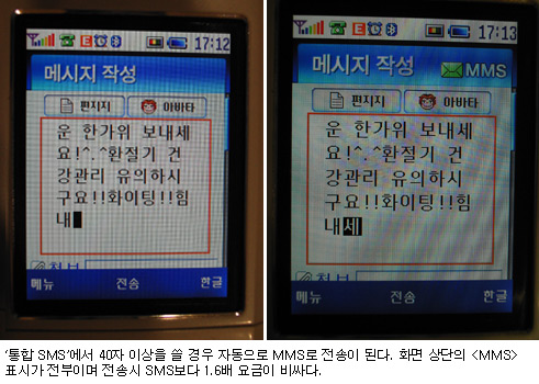 ÀÌ °ü°èÀÚ´Â ÀÌ¾î £¢MMS°¡ SMSº¸´Ù ¿ä±ÝÀÌ ºñ½Ñ °ÍÀº »ç½ÇÀÌÁö¸¸ 80ÀÚ Á¤µµÀÇ ¹®ÀÚ¸¦ ±âÁØÀ¸·Î ÇÒ ¶§ SMS´Â µÎÅëÀ» º¸³»¾ß ÇØ 60¿ø, MMS´Â 50¿øÀ¸·Î ¿ÀÈ÷·Á ½Î´Ù£¢¸ç £¢MMS°¡ SMS º¸´Ù ºñ½Î´Ù´Â °ÍÀº ÀϹÝÀε鿡°Ô À߸ø ¾Ë·ÁÁø »ó½Ä£¢À̶ó°í ¼³¸íÇß´Ù.