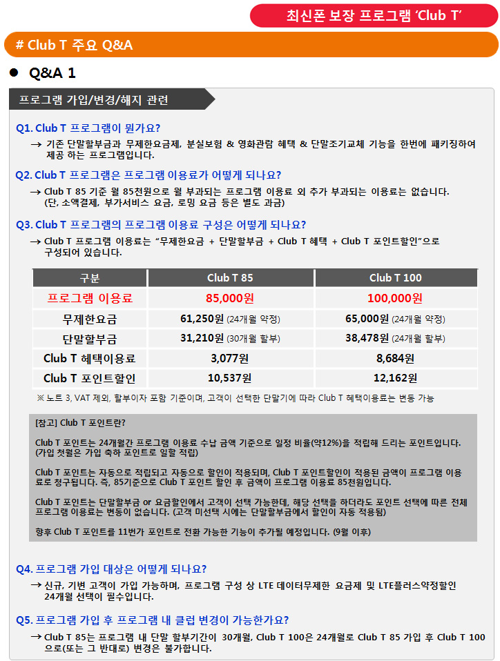 2.Club T 85´Â 1³â 6°³¿ù¸¶´Ù Club T 100Àº ¸Å³â ´Ü¸» ±³Ã¼ °¡´É!