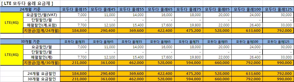 ¡Û ¿Ã·¹ 4G LTE ¿ä±ÝÁ¦ ÇÁ·Î¸ð¼Ç
