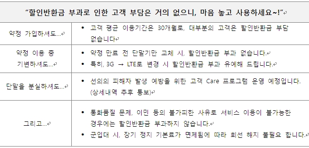 (Á¾·®ÇüÀ¸·Î ¿ä±ÝÁ¦ º¯°æ, LTE ¡æ 3G ¿ä±ÝÁ¦·Î º¯°æ, À̵¿ÀüÈ­ ¡ê ÅÂºí¸´ ¿ä±ÝÁ¦ °£ º¯°æ ½Ã, ÇÒÀιÝȯ±Ý ºÎ°ú) ¾àÁ¤ÇÒÀÎÁ¦µµ´Â ƯÁ¤ ¿ä±ÝÁ¦¸¦ ÀÏÁ¤ ±â°£µ¿¾È ÀÌ¿ëÇÒ °ÍÀ» ¾à¼ÓÇÏ´Â °æ¿ì, ÀÌ¿¡ ´ëÇÑ ¹Ì·¡ ¿ä±Ý ¼öÀÍ¿¡ ±â¹ÝÇÏ¿© ¿ä±Ý ÇÒÀÎ ÇýÅÃÀ» Á¦°øÇØÁÖ´Â °ÍÀÔ´Ï´Ù. ÀÌ¿¡ µû¶ó, ¾àÁ¤ÇÒÀÎÁ¦µµ º°·Î ¿ä±Ý ÇÒÀÎ ¼öÁØÀÌ ¸ðµÎ ´Ù¸£°Ô ¼³°èµÇ¾î ÀÖ½À´Ï´Ù.