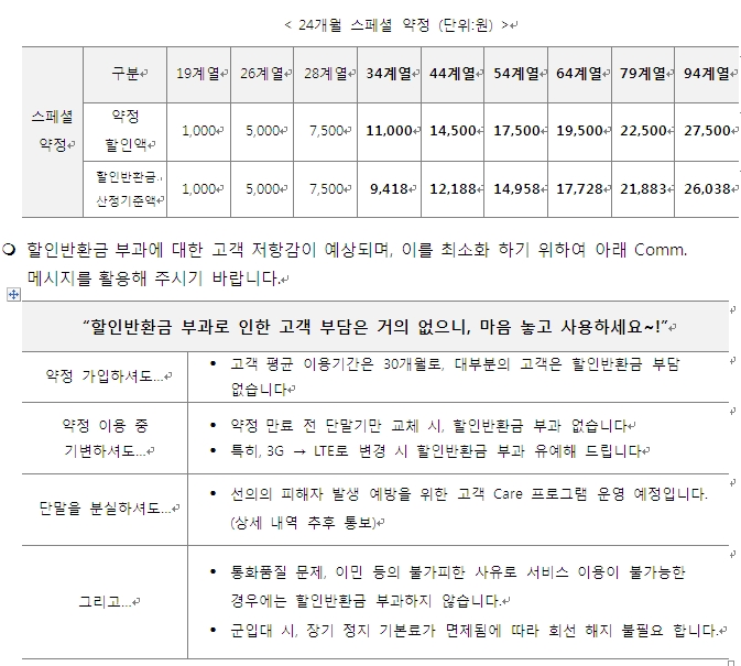 - 24°³¿ù ¾àÁ¤ ½Ã ¾àÁ¤¸¸·á ÈÄ 6°³¿ù°£ Ãß°¡ ÇÒÀÎ Á¦°ø ±â°£ Áß¿¡´Â, ¾àÁ¤ ¶Ç´Â ¼­ºñ½º ÇØÁö ½Ã¿¡µµ ÇÒÀιÝȯ±Ý ¹ÌºÎ°ú(´Ü, ¾à°ü ½Å°íÁß. ½ÃÇà È®Á¤ ½Ã Ãß°¡ °øÁö ¿¹Á¤)