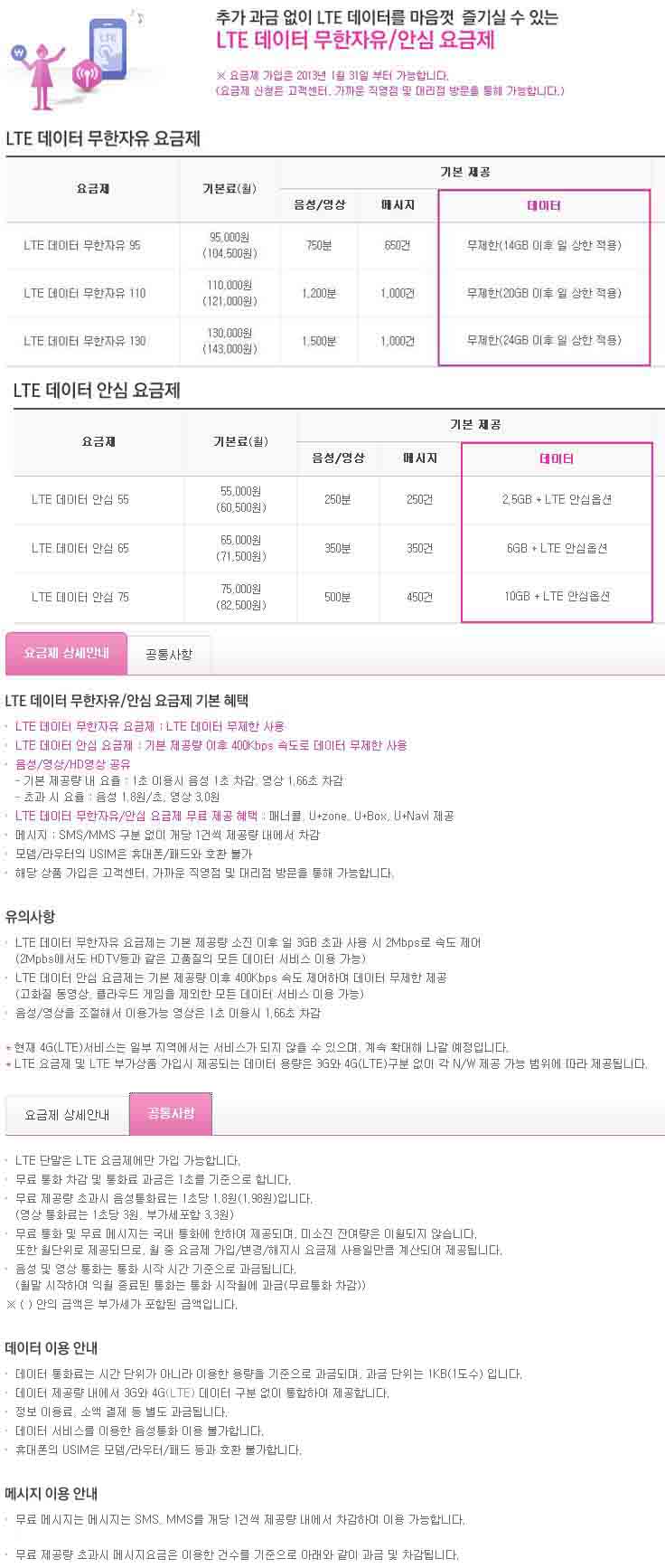 [LGU+] LTE¹«Á¦ÇÑ ¿ä±ÝÁ¦ ¹× ¾È½É¿É¼Ç ¿ä±ÝÁ¦ Ãâ½Ã ¾È³»