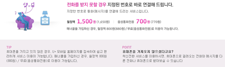 ¾Æ·¡ LGU+ ÁÖ¼Ò ÂüÁ¶Çϼŵµ µË´Ï´Ù.(http://www.uplus.co.kr/css/pord/cosv/cosv/RetrievePsMbSDmsgInfo.hpi?catgCd=50301&prodCdKey=C000000101)